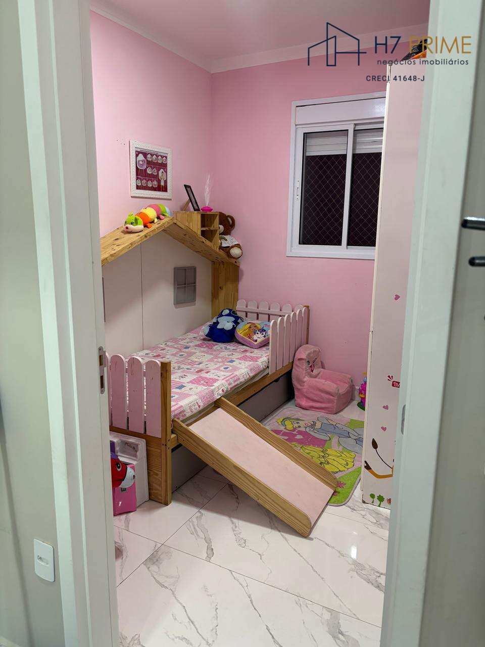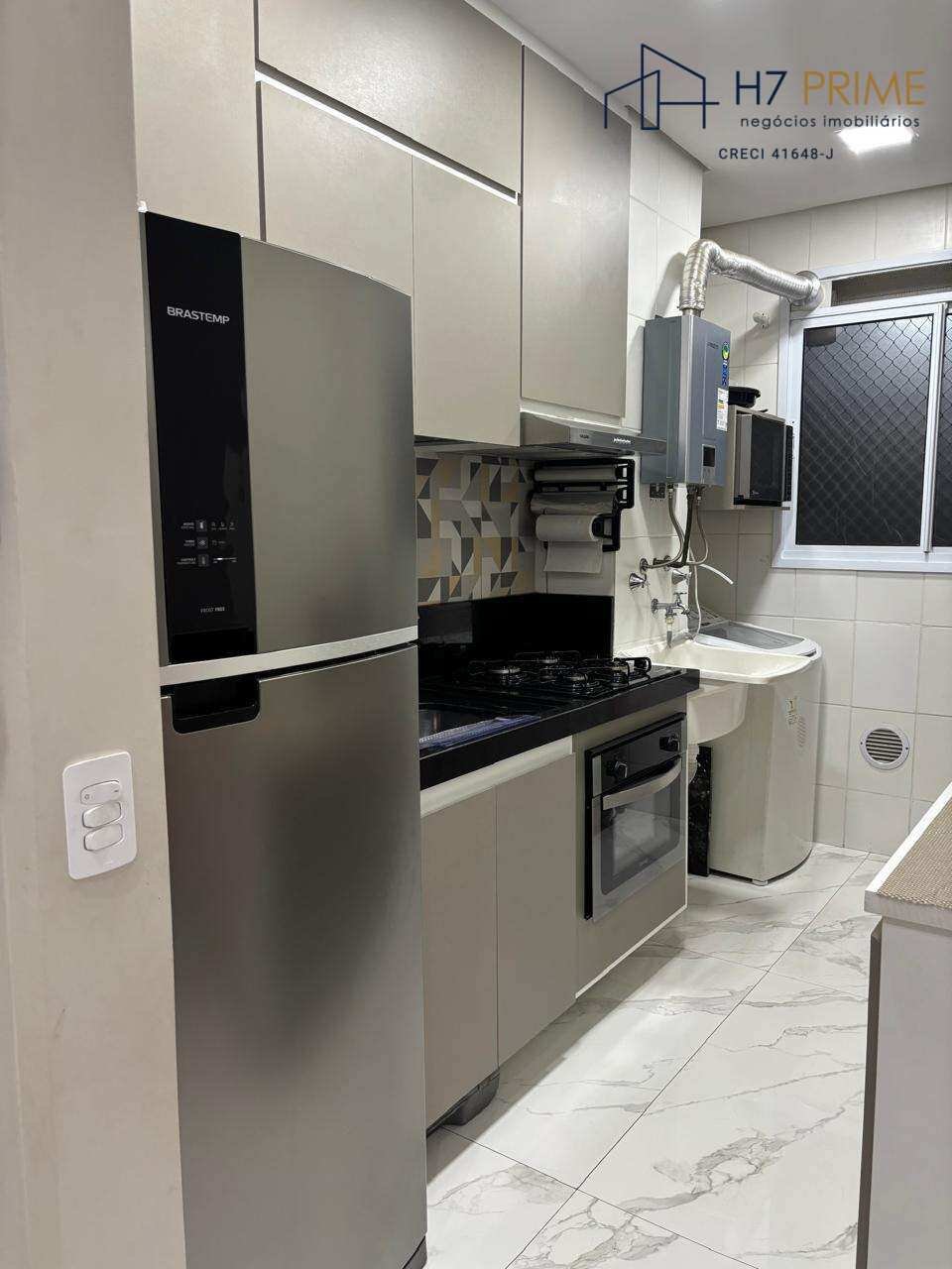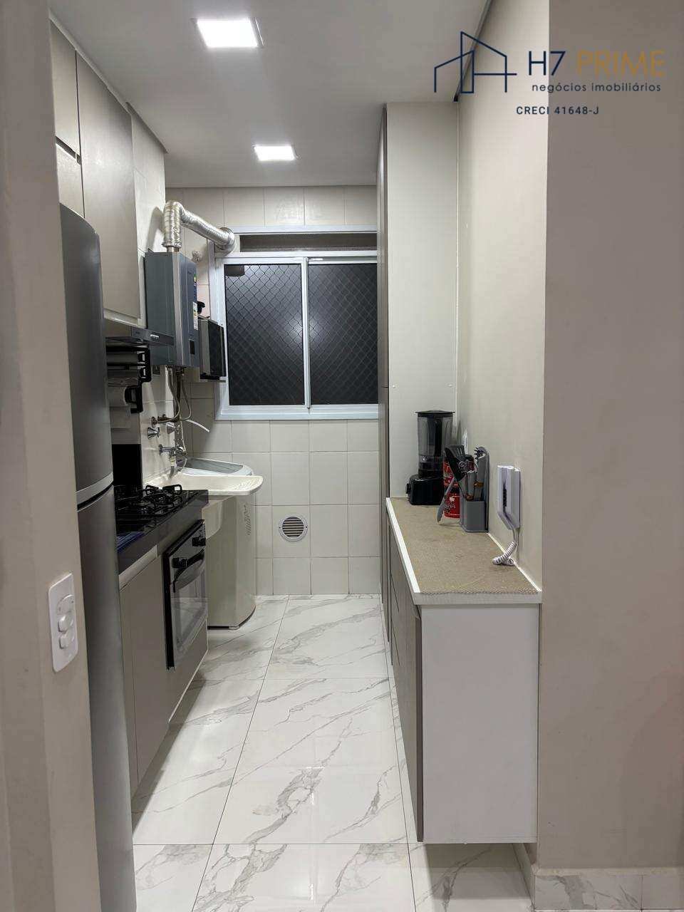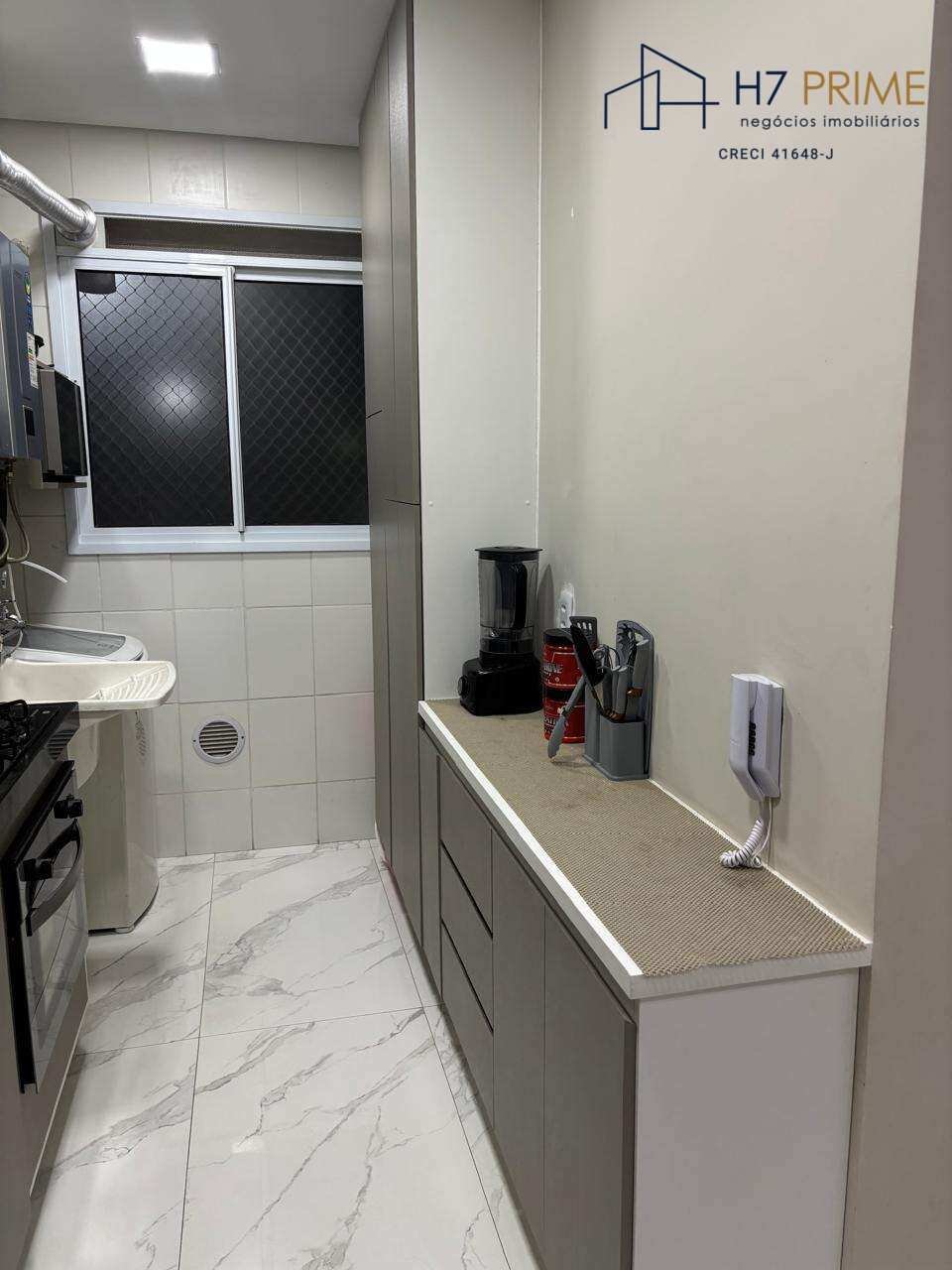 Apartamento de 51m², localizado em andar baixo, 2 dormitórios, sala, banheiro social, cozinha com armários planejados e área de serviço.