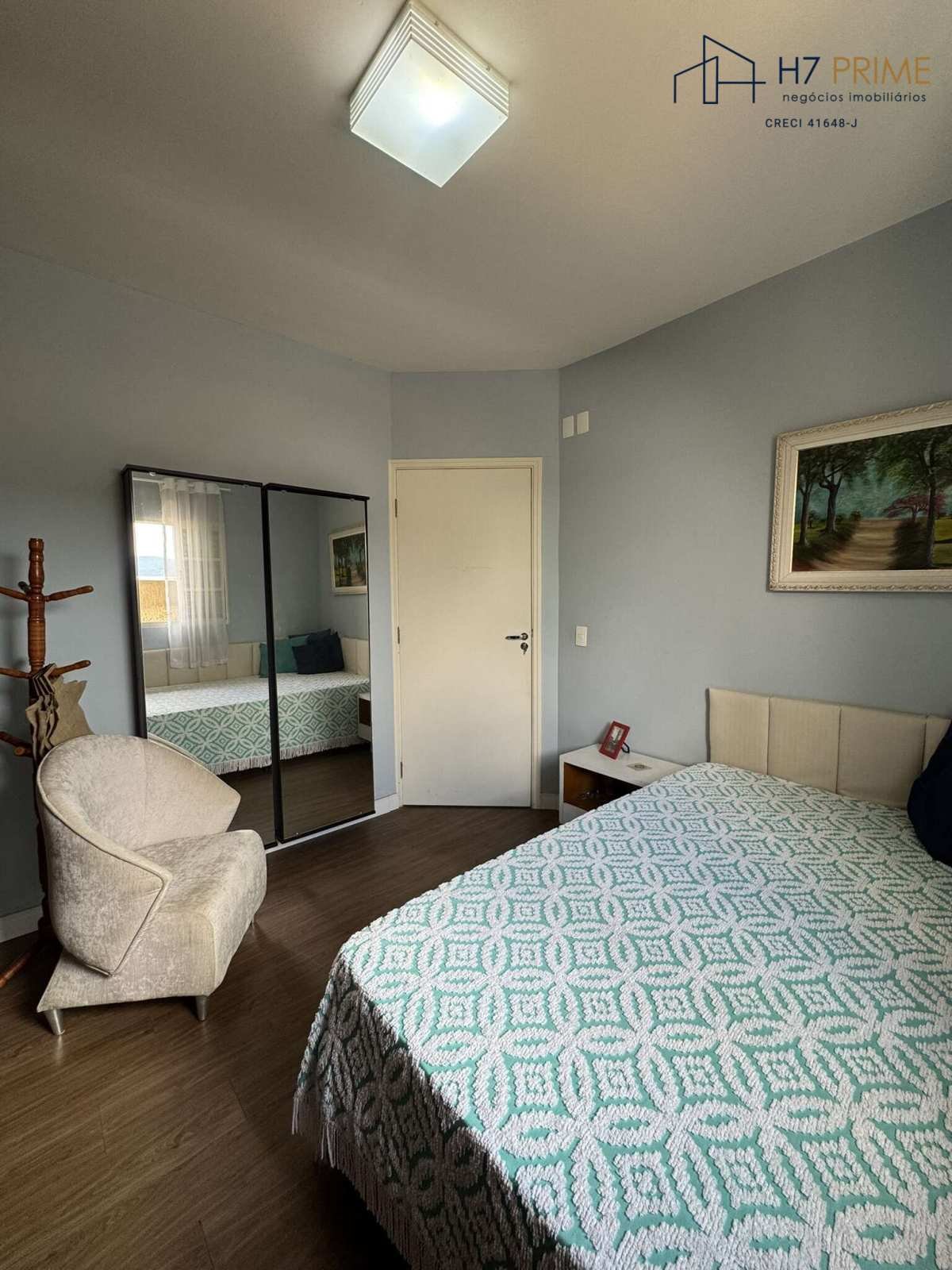 Dormitórios com piso vinílico e demais ambientes em porcelanato.
