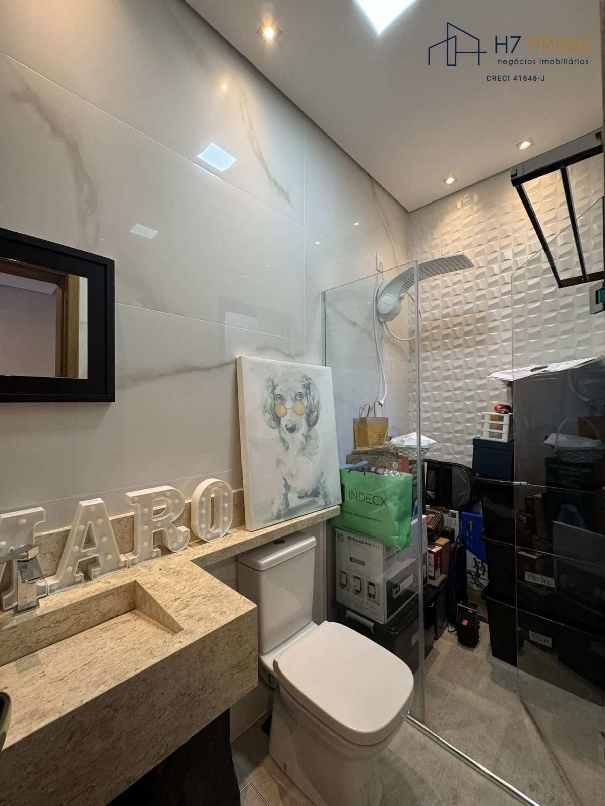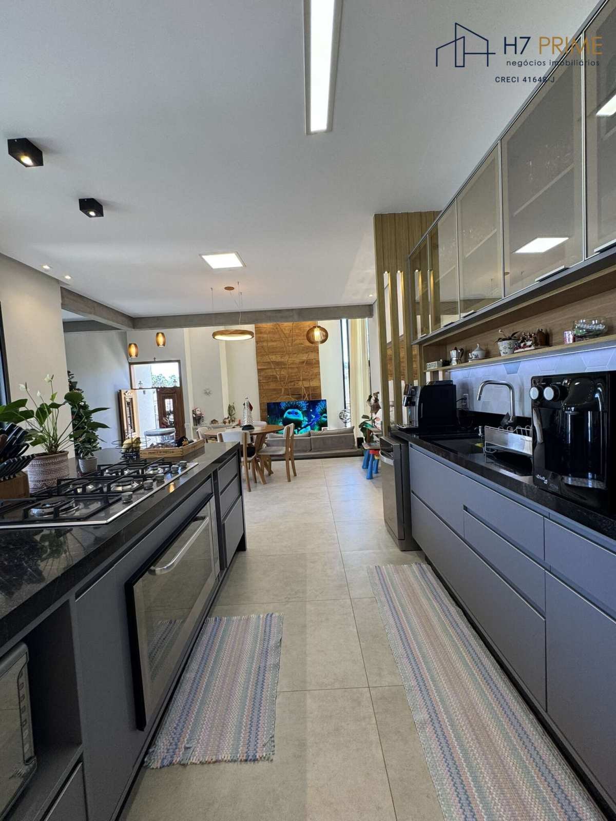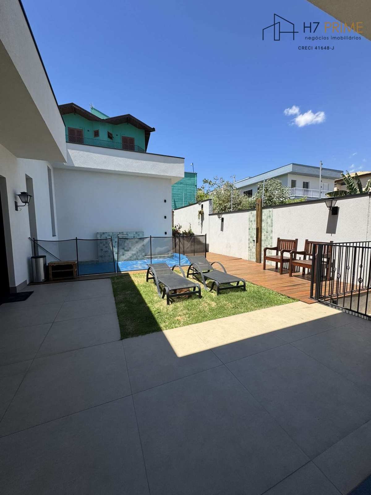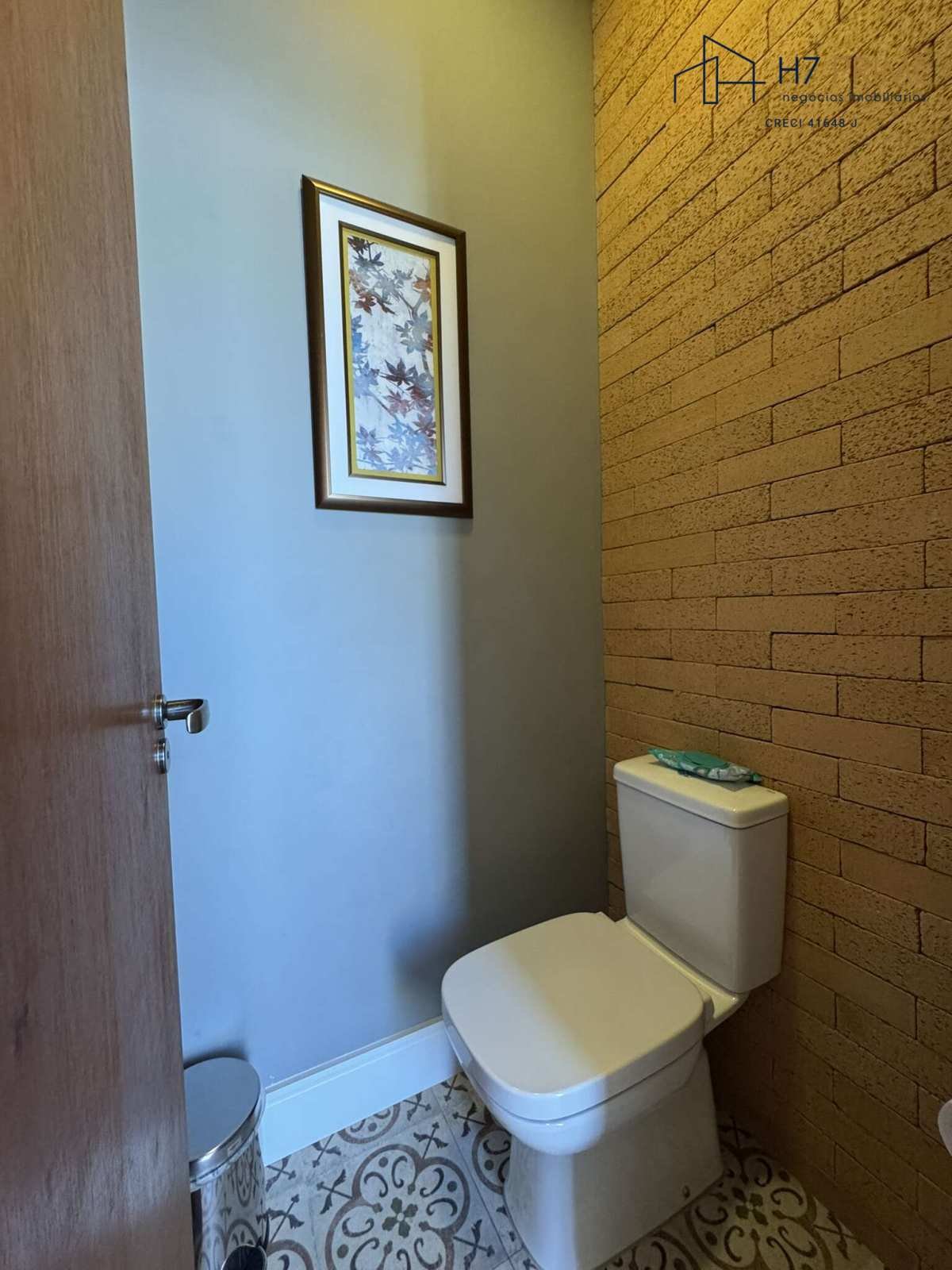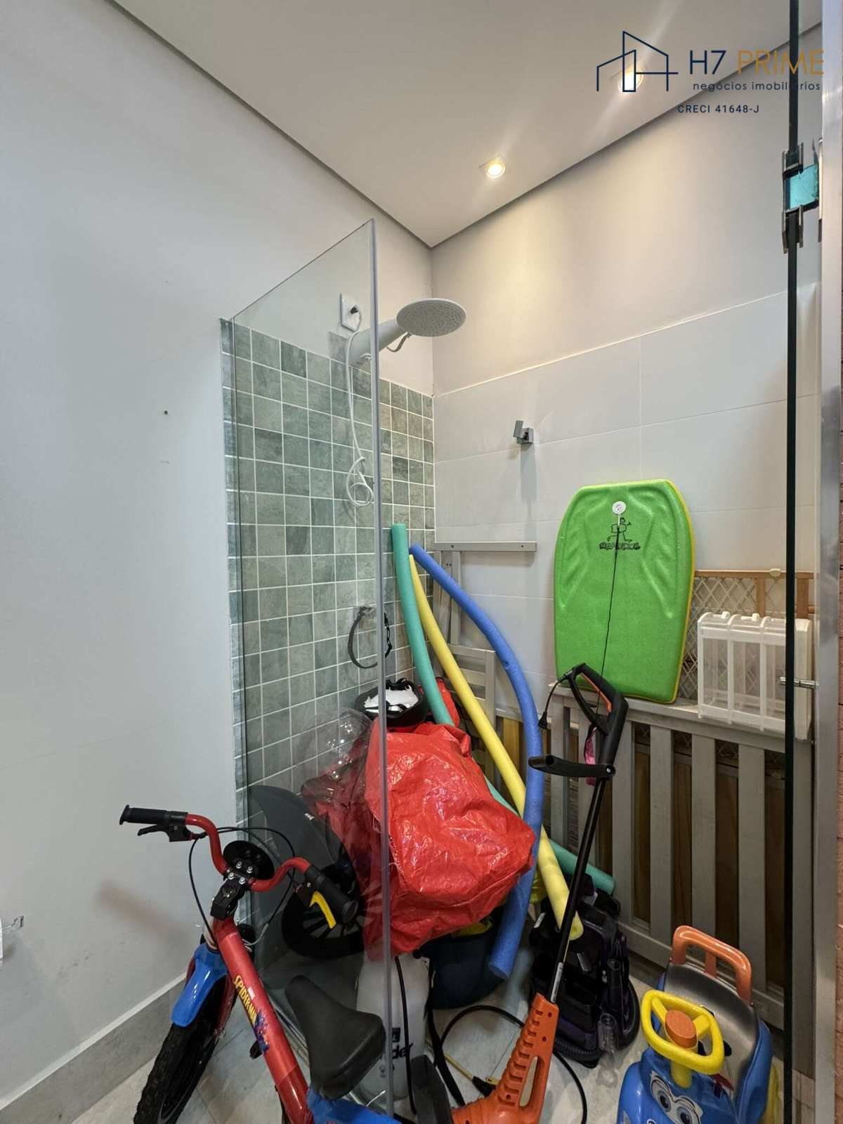A parte privativa oferece três suítes com varanda, sendo duas com closet, garantindo comodidade e privacidade. A casa também possui lavabo e sistema de câmeras e alarmes já instalados.