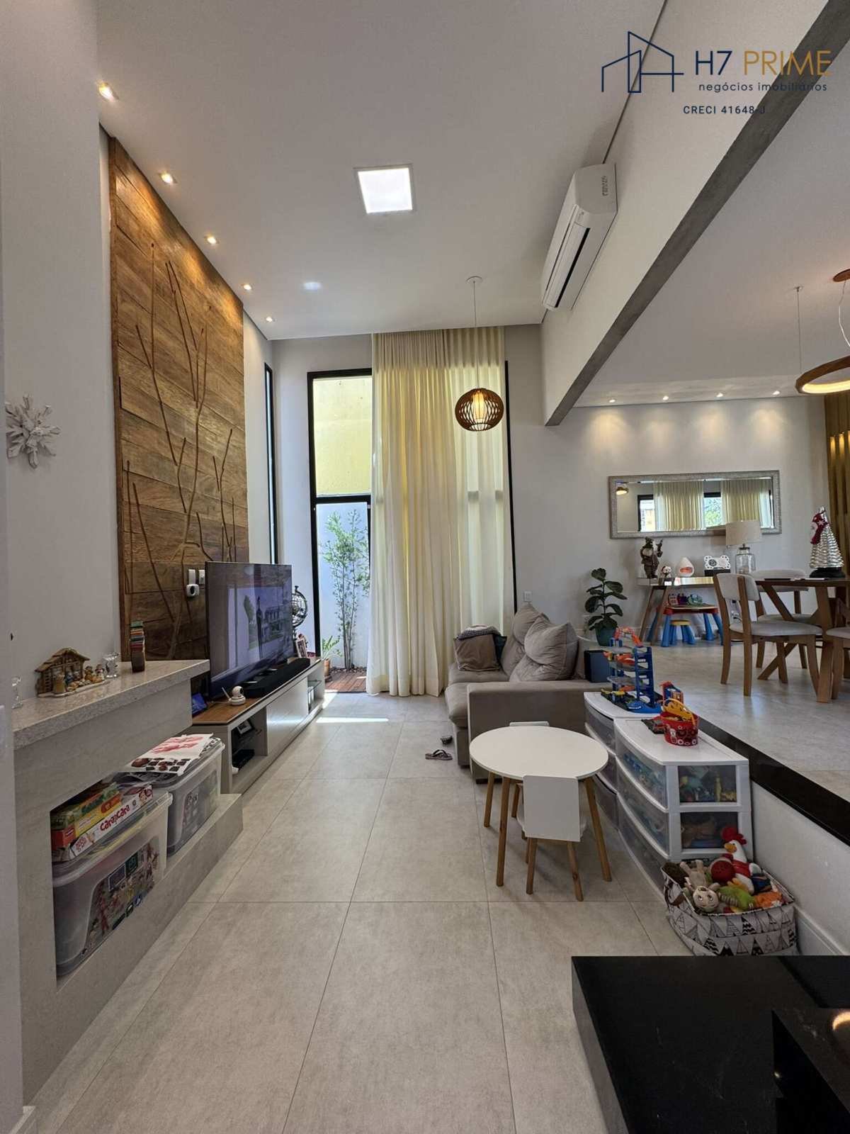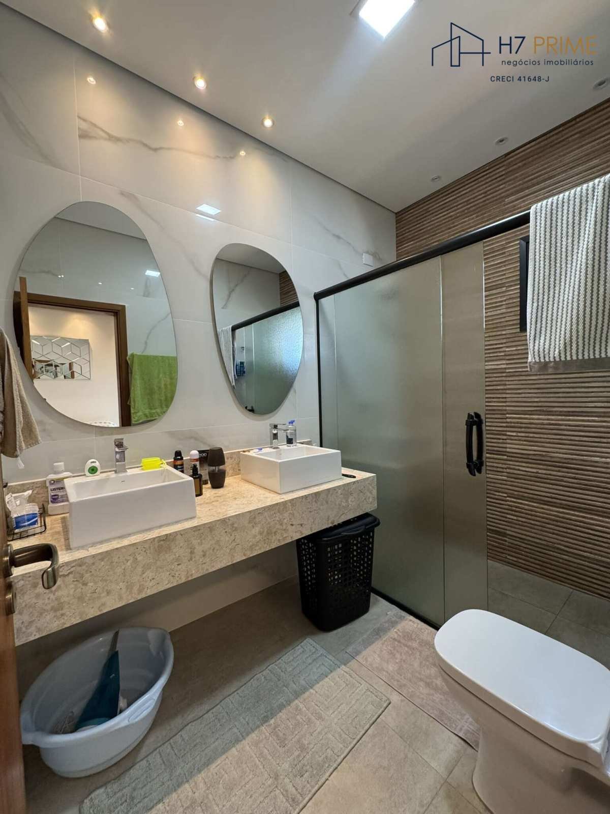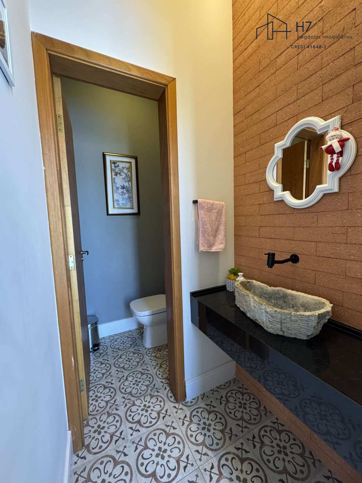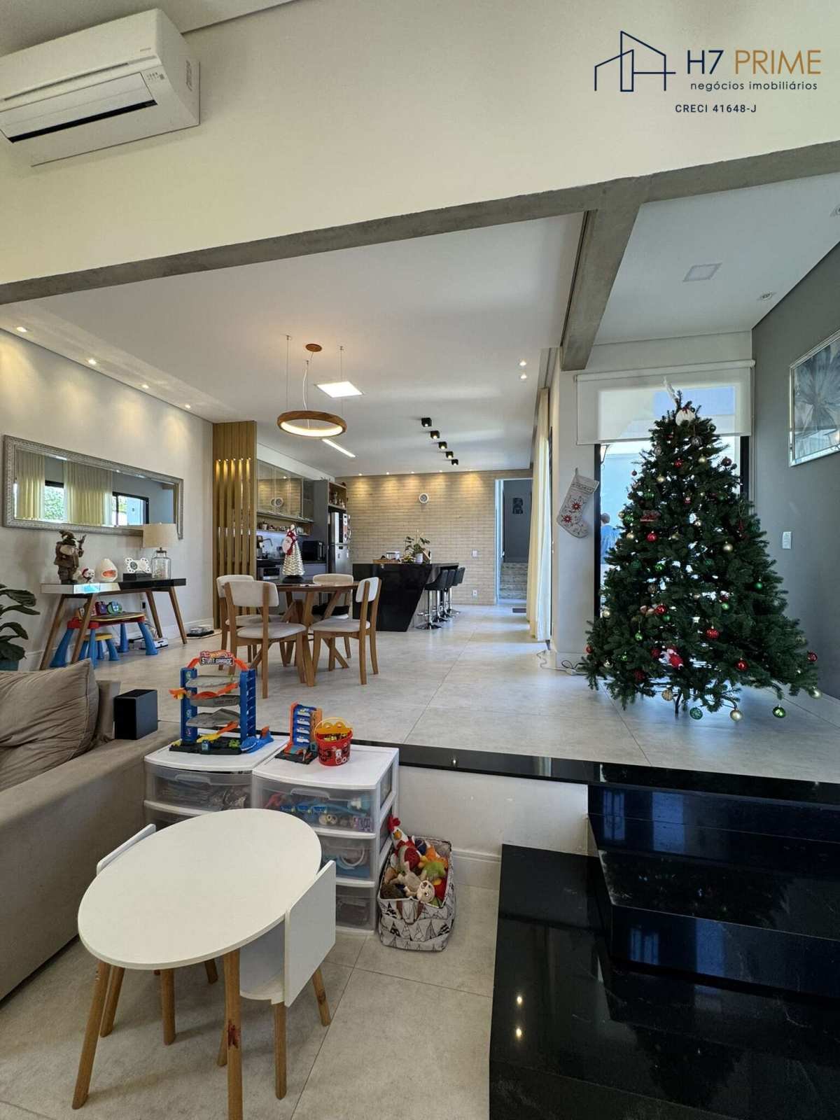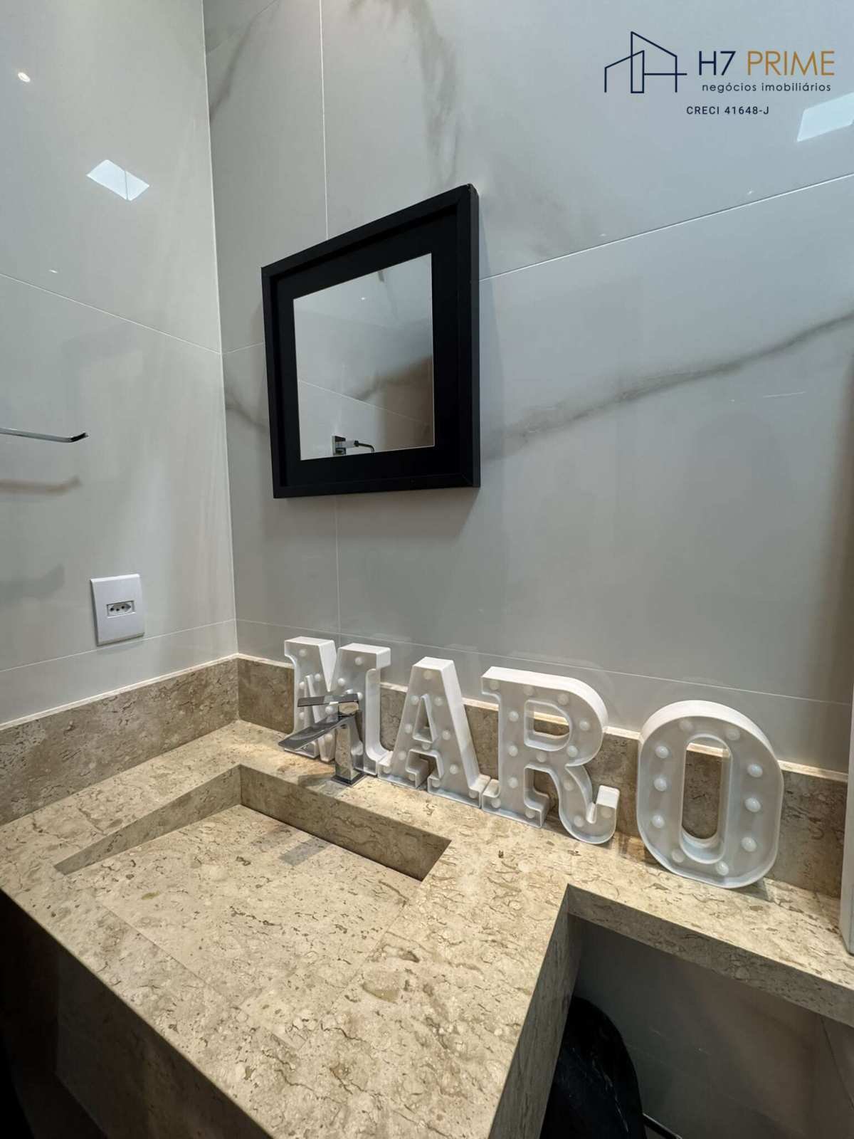 A parte privativa oferece três suítes com varanda, sendo duas com closet, garantindo comodidade e privacidade. A casa também possui lavabo e sistema de câmeras e alarmes já instalados.