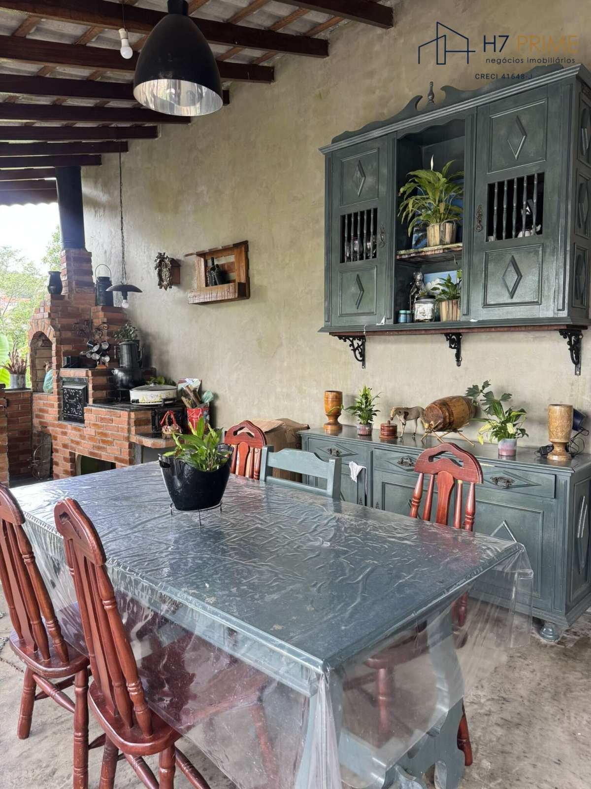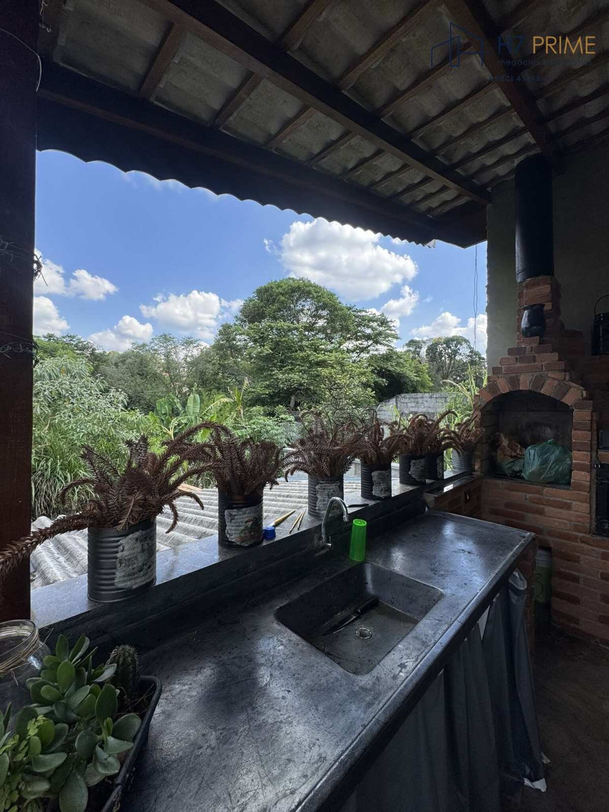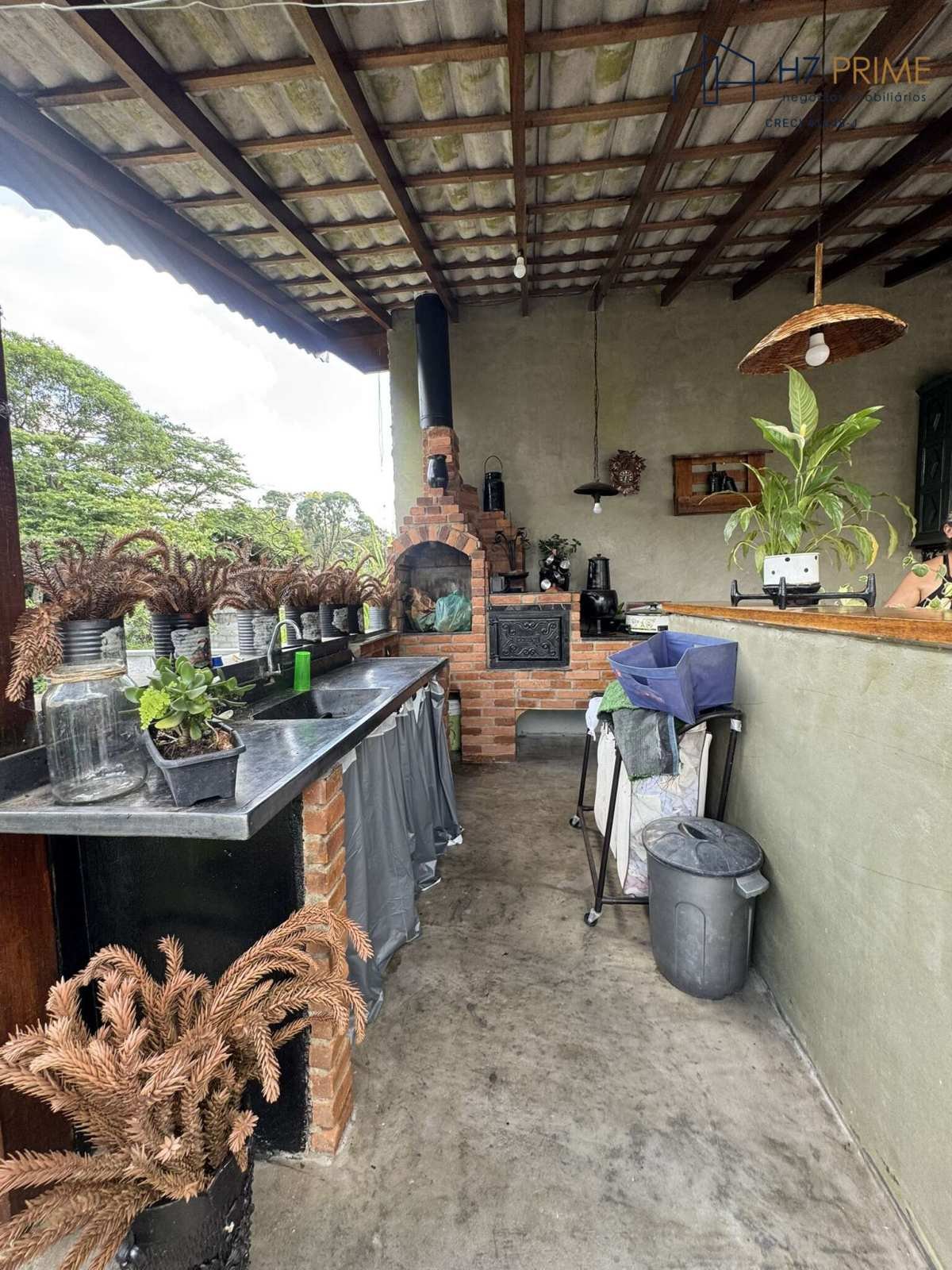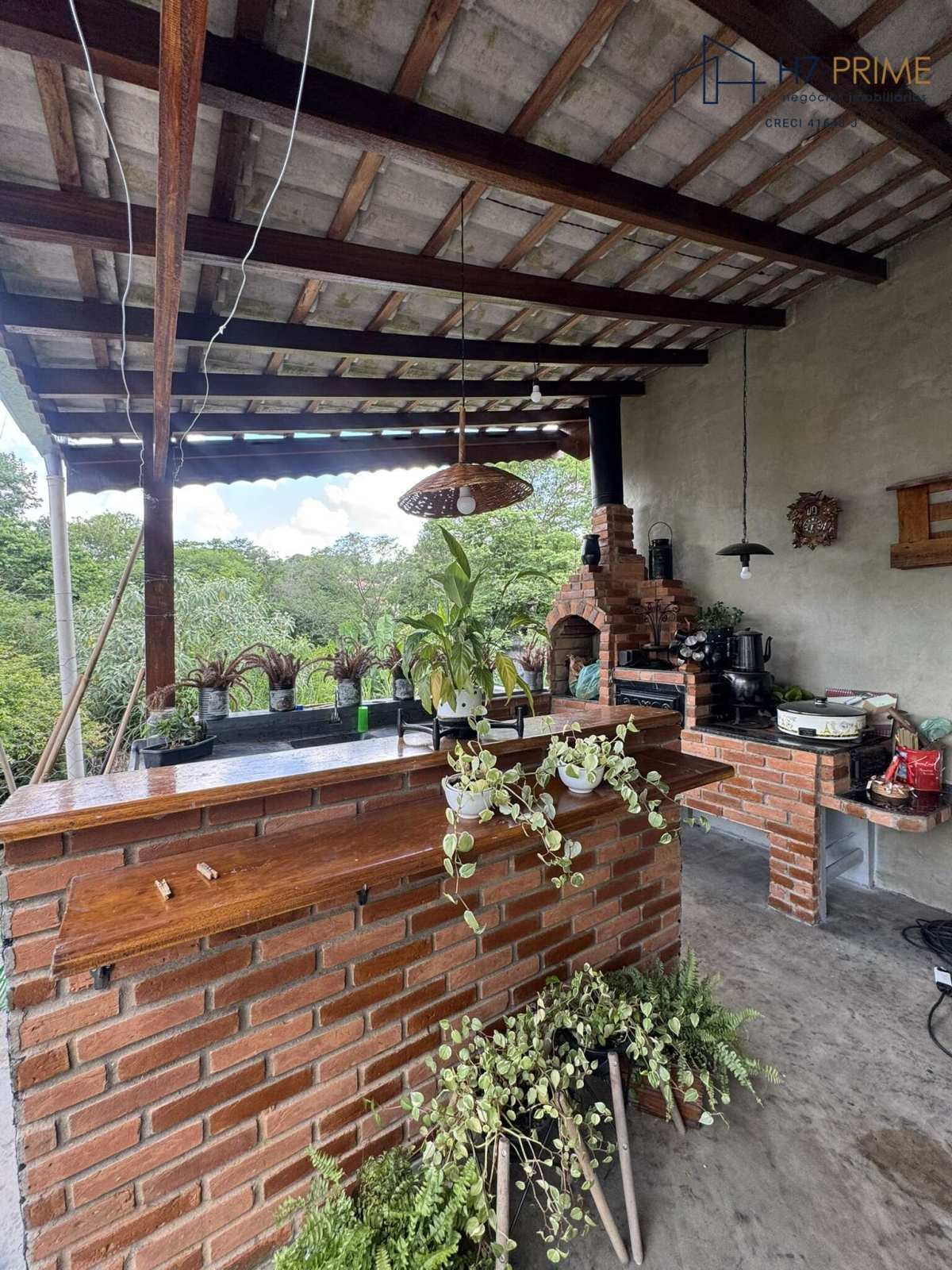 Área externa com churrasqueira e espaço arborizado