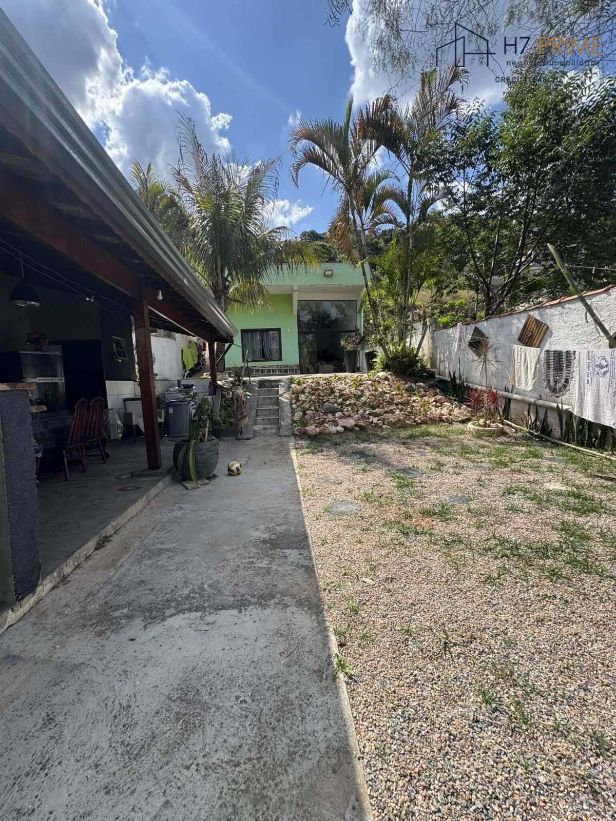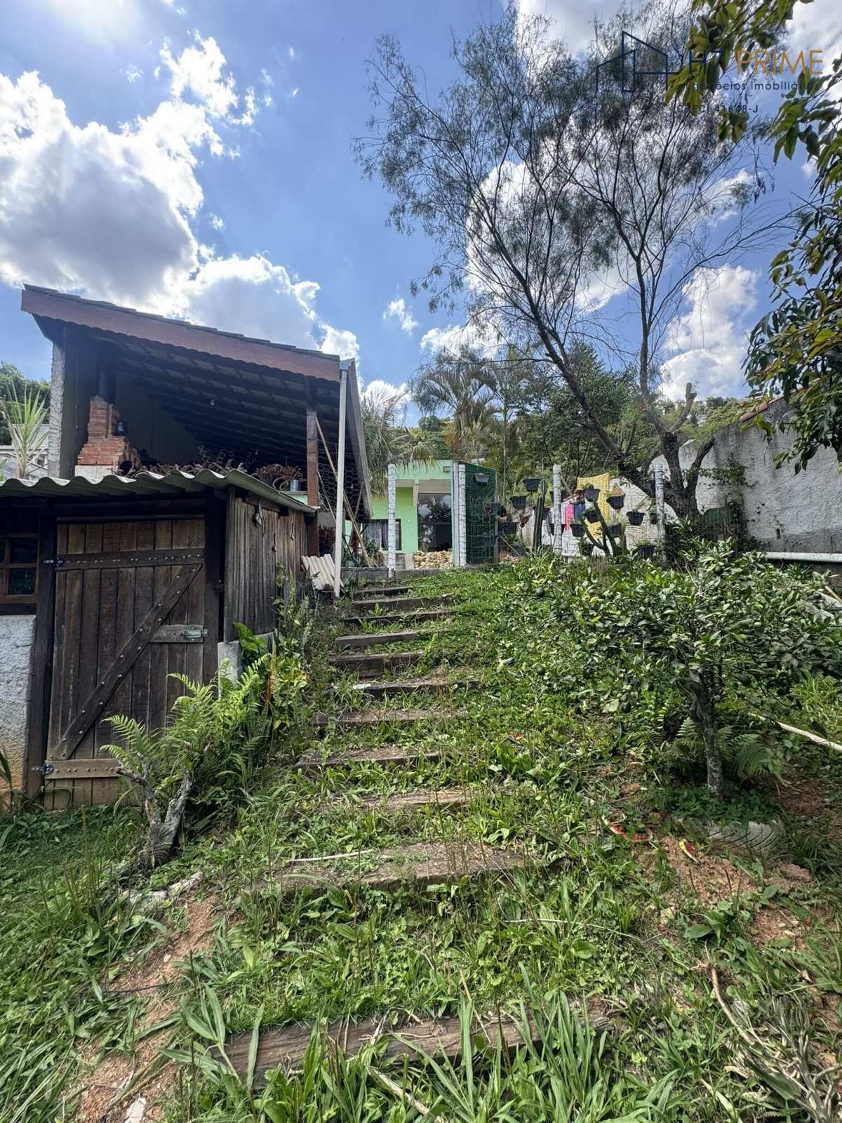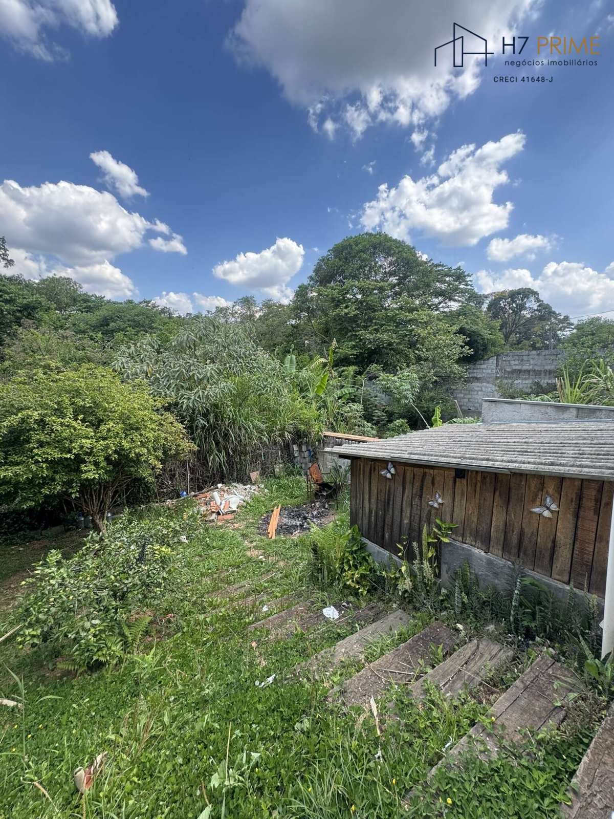 Área externa com churrasqueira e espaço arborizado