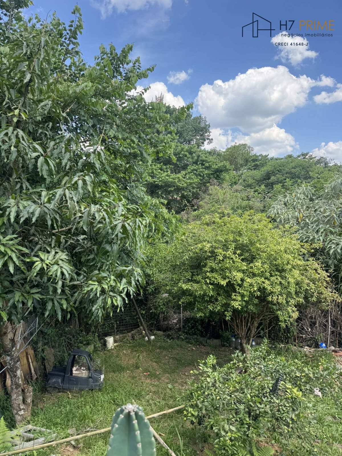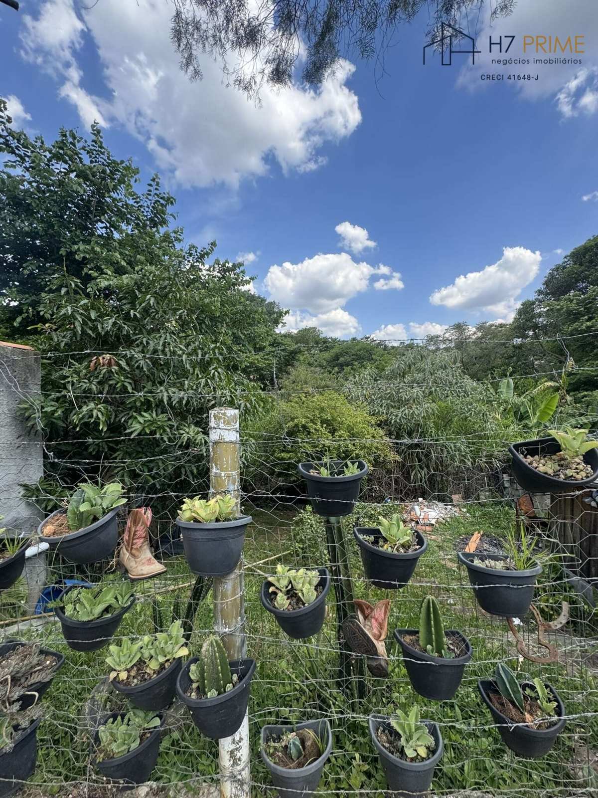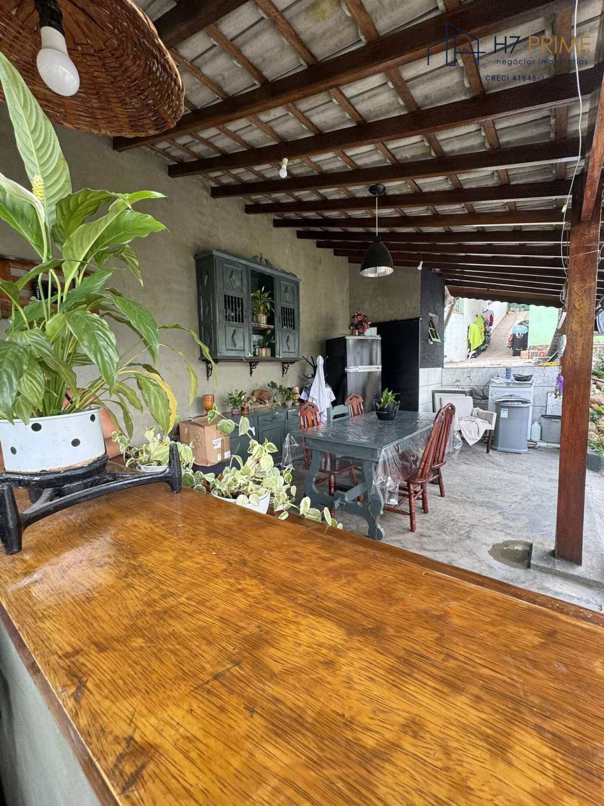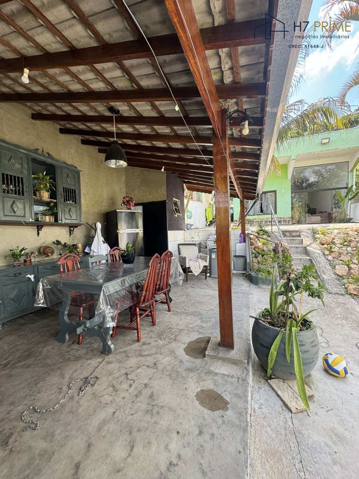 Área externa com churrasqueira e espaço arborizado