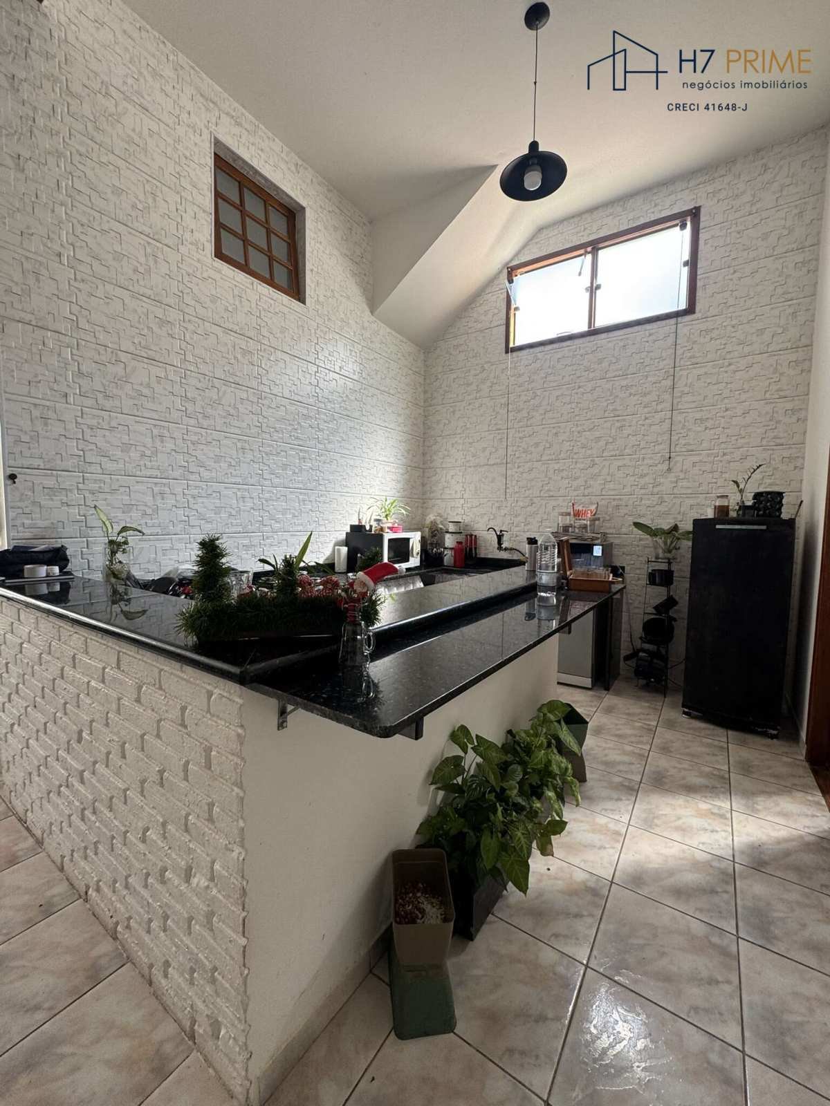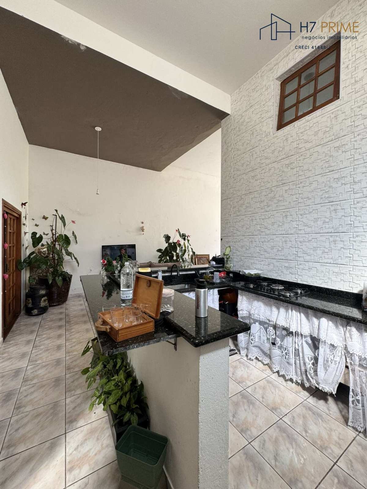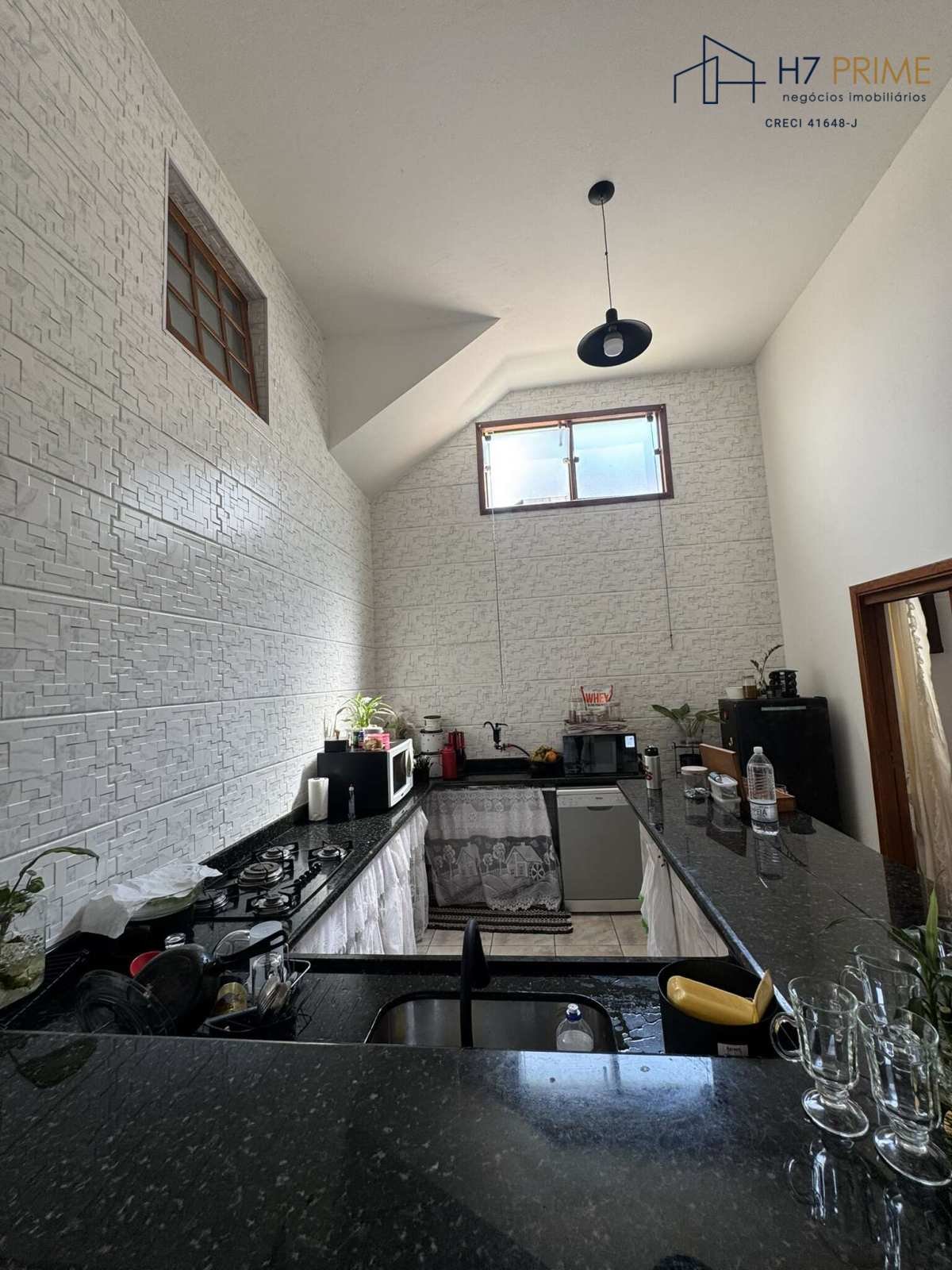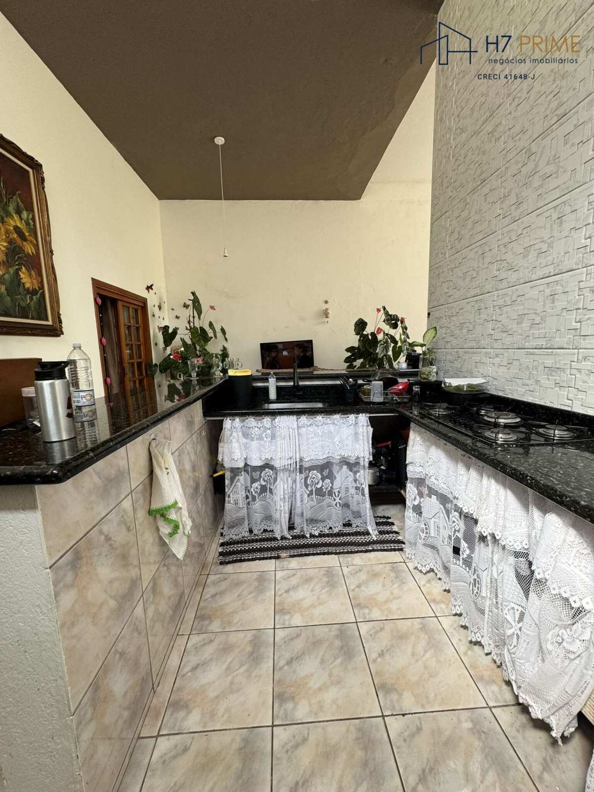Chácara com 3 quartos, sala ampla, cozinha em alvenaria com cooktop.